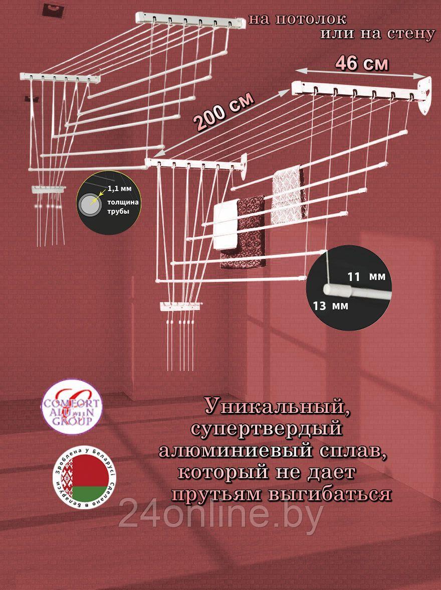 Сушилка для белья Comfort Alumin Group 200 см Лифт Универсальное крепление 6 прутьев алюминий/ белый